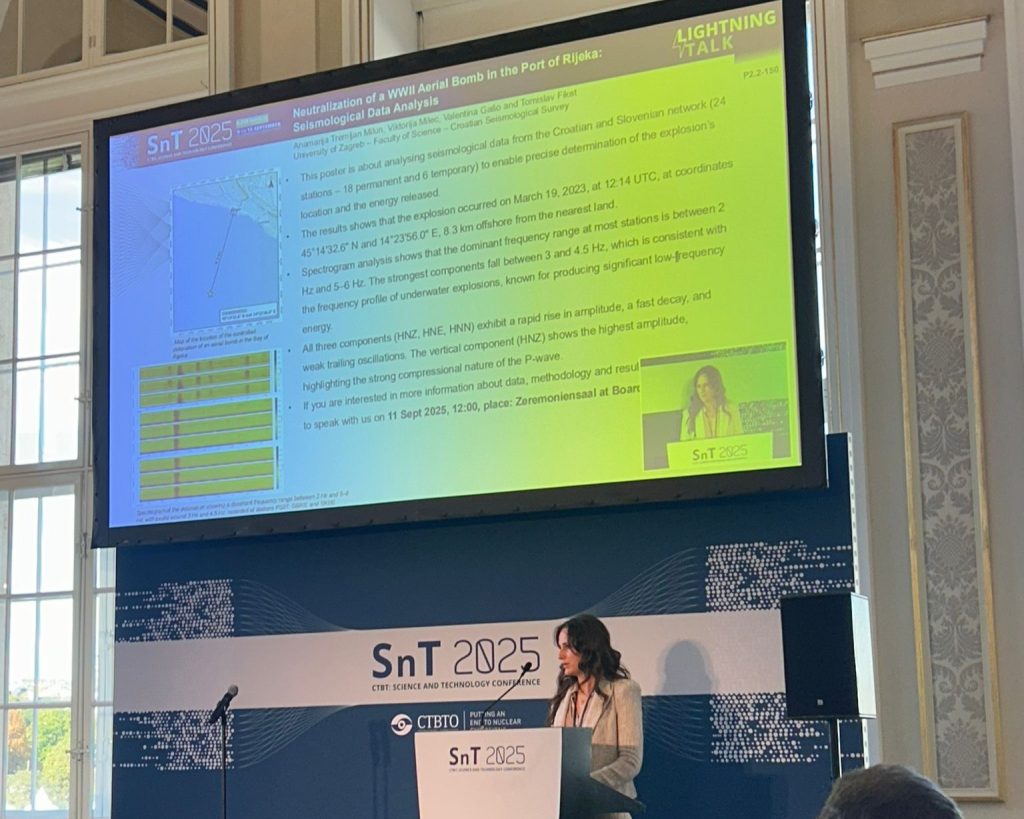 U sklopu konferencije imali smo priliku predstaviti e-poster “Neutralization of a WWII Aerial Bomb in the Port of Rijeka: Seismological Data Analysis“ autora Anamarije Tremljan Milun, Viktorije Milec, Valentine Gašo i Tomislava Fiketa.