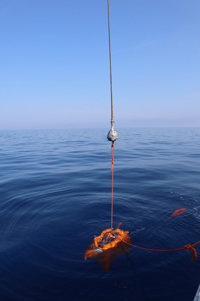 Upon arrival at the deployment locations, the instruments were lifted above the sea surface by crane and released into the sea. The depths of the instruments were checked with the P.A.C.S. deck unit, and the instruments were deployed at depths ranging from 686 to 1022 meters.
